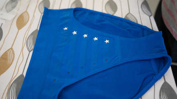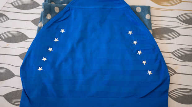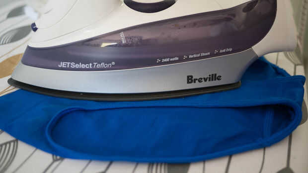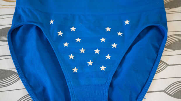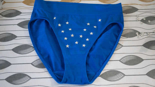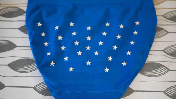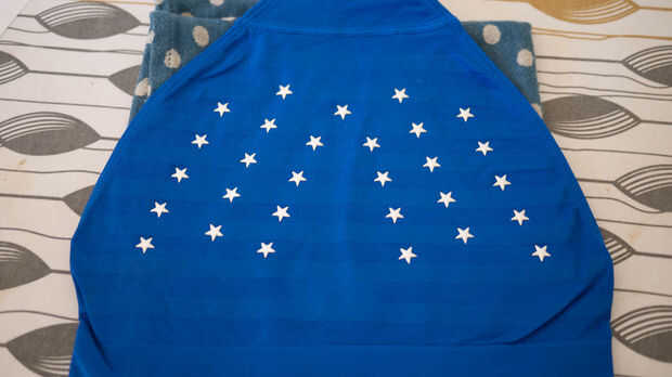 Marcar las posiciones de las estrellas en la frente. Luego sujete la plancha hacia abajo en estas estrellas sin moverse. Permiten enfriar y luego voltear las bragas dentro hacia fuera y coloque una toalla de té en el interior para evitar que el calor de la construcción de ese lado. Coloque la plancha sobre y detrás de las estrellas de calor hasta se puede ver un resumen de ellos en la tela.