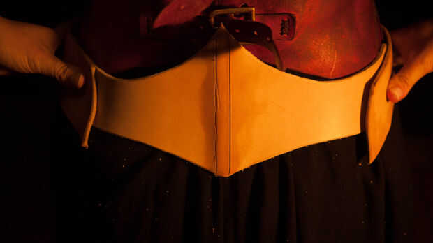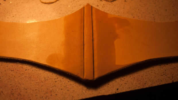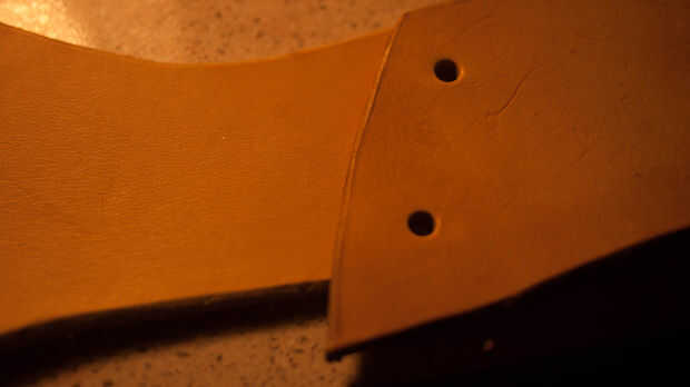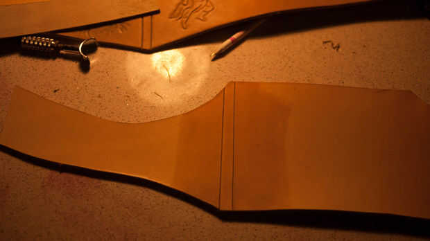 Obtener una medición de cintura y dibujar qué forma de diseño que te gusta. He hecho este cinturón en dos piezas para que se vea más interesante. Me creado una línea de centro vertical mediante el uso de los divisores y seguido por el cuchillo del eslabón giratorio. Esto me permitió mantener doblar el cinturón por la mitad y cortar así era simétrica. Luego recorta los extremos de este cinturón delantero en una agradable forma redondeada. Borde biselado y luego pulir esto.