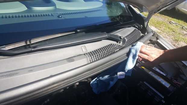 (PRECAUCIÓN: tenga cuidado de limpieza bajo el capó con la arandela de presión) y limpiar los canales de parabrisas.