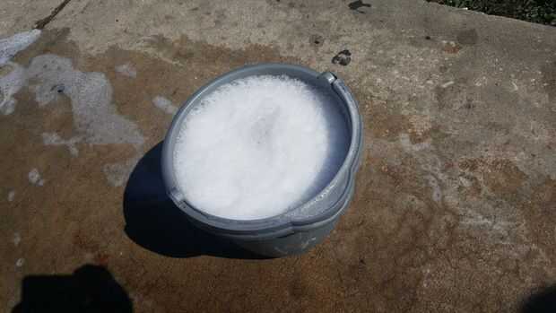 Llene el balde con agua limpia! Añadir jabón de coche, poner el trapo y cepillo en el cubo de fregar