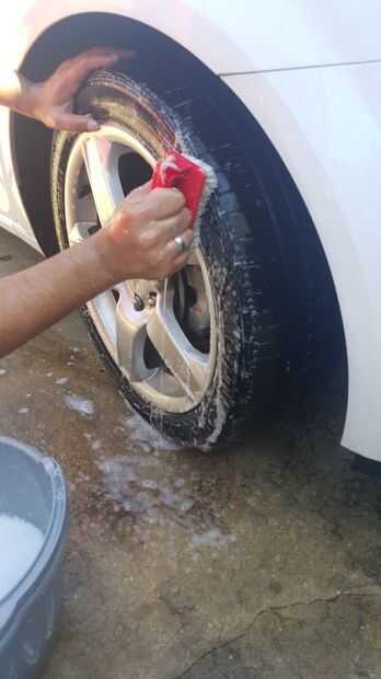 Paso 1: Aplique el coche hacia abajoLo primero que desea hacer cuando lave su coche es aerosol de los neumáticos, ruedas, ruedas y humedecer bien el coche, cualquiera pierde la suciedad o mugre de.Puede utilizar un desengrasante en tus neumáticos y á