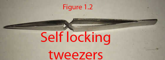 Usted también necesitará algo para agarrar con, estoy usando pinzas de fijación del uno mismo, pero podría utilizar pinzas hemostáticas o si eres muy hábil con los dedos fuertes, puede usar pinzas regulares.