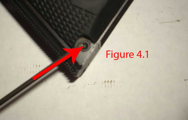¿Sigue conmigo? ¡ EXCELENTE! Esto es donde se pone interesante. Ahora tienes que mantener un ojo en que pin va donde, y qué dirección va. Ahora usa su golpe para empujar el perno hacia fuera según la figura 4.3. No necesita su herramienta para, si no empuje hacia fuera fácilmente, volver sobre los pasos y asegurarse de que no te pierdas nada. Si lo hizo, y ese martillo está bajo tensión, entonces SPROING! Ahí va un globo ocular. Tratar de explicar que el Dr. Now el martillo sólo debe levantar derecho sin problema.