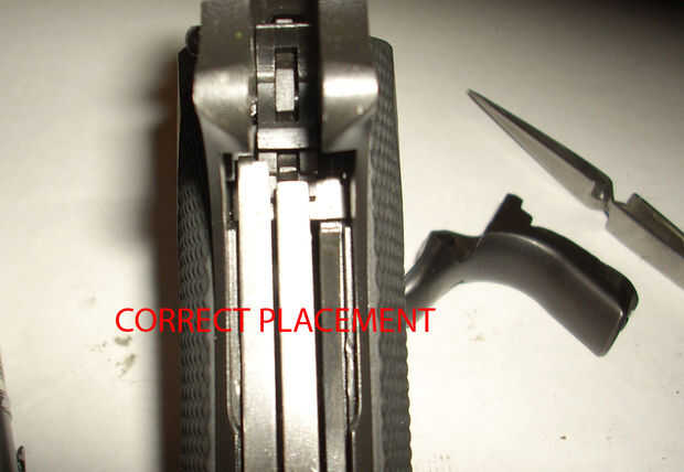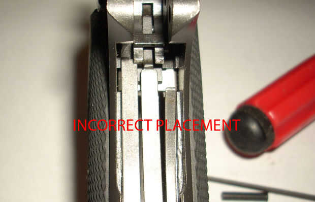 Ahora las dos últimas imágenes tienes que mirar muy muy muy cerca! Son casi idénticos. Uno muestra la manera en que la primavera para dorar se supone en relación a la Asamblea para dorar, y la otra es que no es. Conseguir allí incorrectamente, puede hacerle perder los dedos si tratas de disparar su pistola como esta.