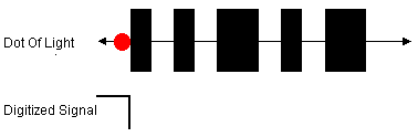 como sabemos los principios de colores blanco y negro, la barra de color negro absorbe el láser, debido a esto en el lado receptor no podemos conseguir cualquier señal. pero las barras de color blanco refleja la luz del láser, que además son absorbidas por el receptor.