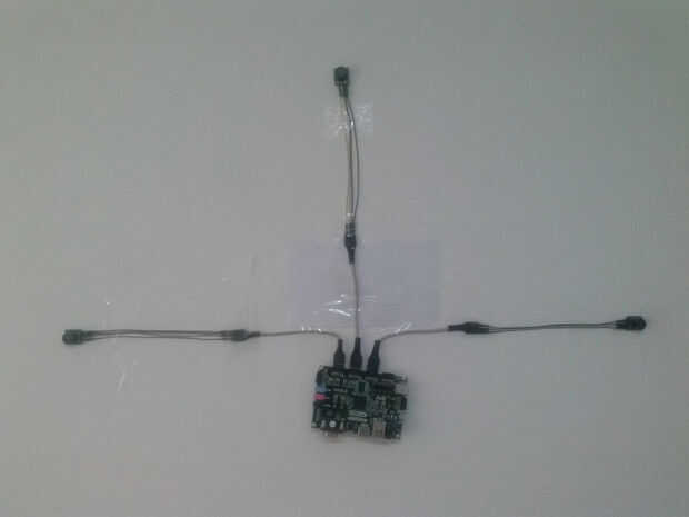 Luego tendrá que colocar todos MaxSonar 3 sensores, esta configuración reduce los gestos de alias y al mismo tiempo le dará una mayor precisión. Puede colocarlos en una pared como se hizo en la imagen superior o en un plexiglás o con otros materiales.