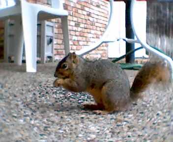 ejemplo una ardilla moviendo una mano de un montón de semillas a la boca sin
