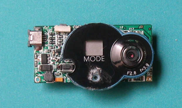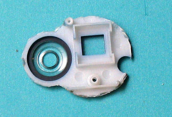 La tercera foto muestra la pieza de plástico montada en la cámara. Desea hacer esto después de haber completado el cableado a la cámara del tablero del PWB.