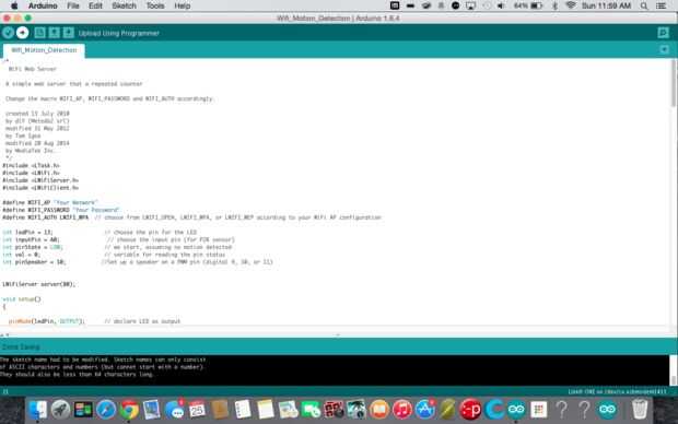 Añadir este código a la Junta. Una vez cargado, volver al navegador de internet y pegar la dirección IP desde el último paso y pulse cargar. Ahora debería ver una página web que dice "Movimiento detectado" o "Movimiento parado". Si es así, todo está funcionando.