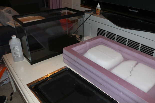 A continuación verter alcohol sobre el fieltro hasta el fieltro se sumerge muy bien en al menos 91% de alcohol isopropílico y el ontop de tanque de pescados de la placa base de metal.