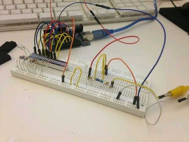 Primero construyó el sistema usando un protoboard.