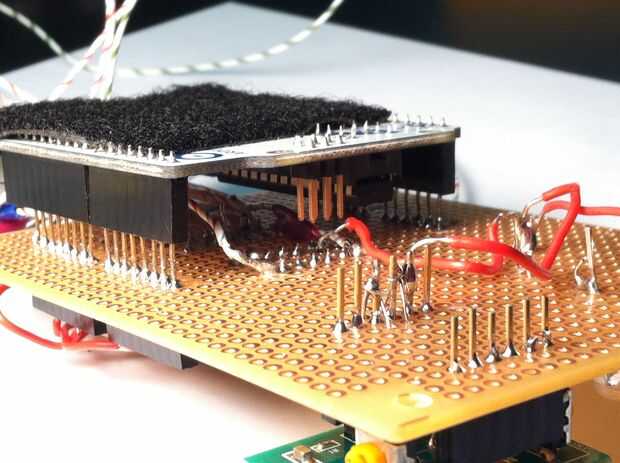 * Dicho esto, no recortar sus pernos de cabecera! De lo contrario, no cabrá dentro de tu Arduino subyacente. Cometí este error porque no había planeado completamente a mi circuito y consiguió llevar con recorte. Déjame decirte, desoldadura esos pins fue un dolor grande! Peor aún, quité el cobre en todos los agujeros que unsoldered, que significaba que tenía que encontrar nuevas filas de agujeros para las clavijas de recambio para la soldadura. Y obviamente tuve que encontrar una nueva serie de pins. Por lo tanto, no seas descuidado como era: que esos pasadores encabezado limpio y alto!