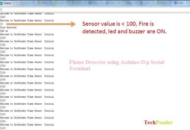 Serial.println ("Bienvenido al Tutorial de Sensor de llama TechPonder");