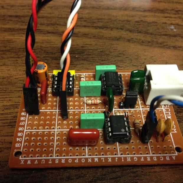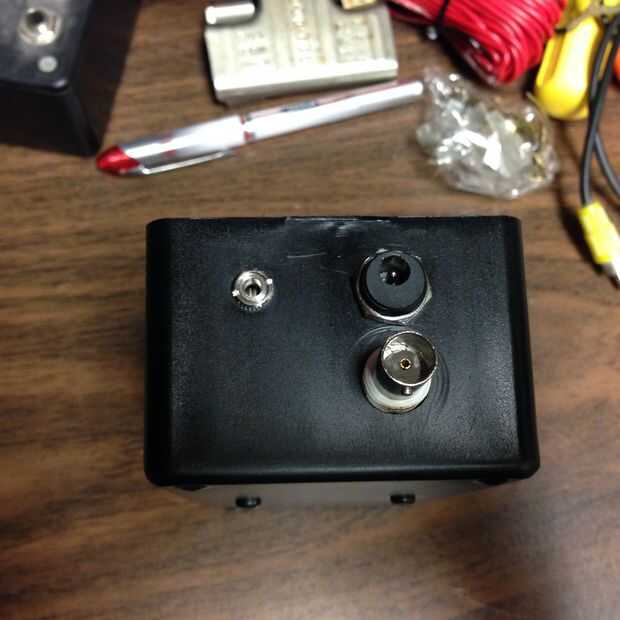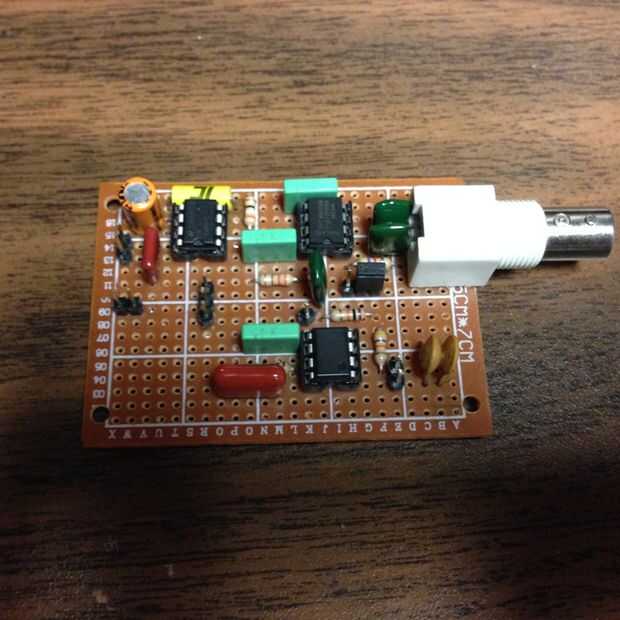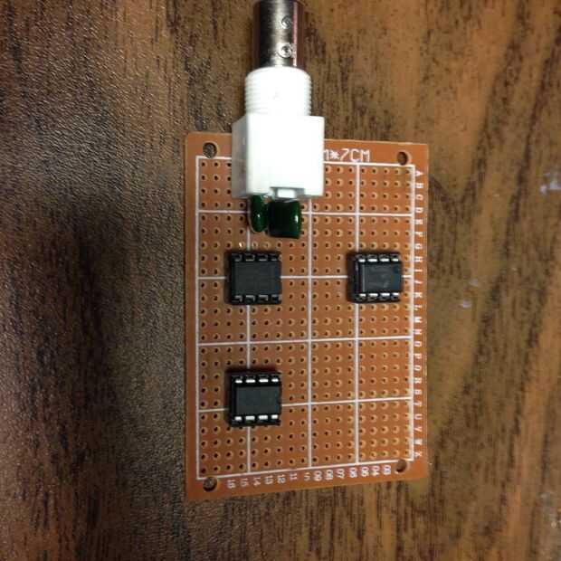 Usé un protoboard pequeño y un conector BNC que había rescatado de una vieja tarjeta de red.