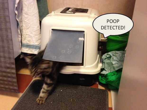 Empuje el botón y la luz roja se enciende si el gato ha estado en el cuadro, si no la luz verde se enciende.