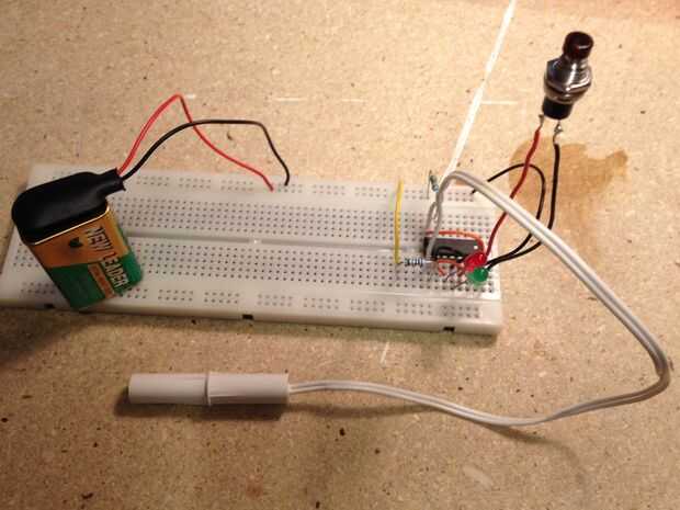 Queremos tan pequeños como corriente posible para que la batería durará tanto como sea posible. Por esta razón tenemos el pulsador s2. Si conecta el dispositivo a una toma de corriente puede saltar el interruptor, de esa manera que no tienes que ir a la caja y pulse el botón para ver el estado. Con un resistor de 10 kOhm encienden los LEDs utiliza apenas.