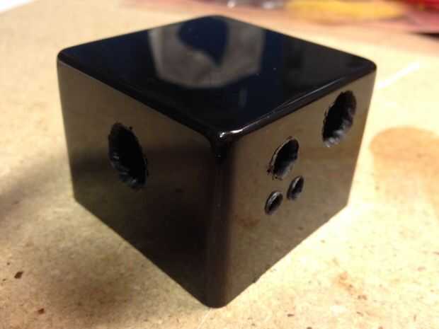 Perfore unos agujeros en la caja de plástico para los interruptores, cables y LEDs.
