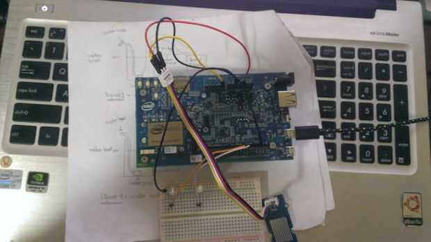 En la foto puedes ver que ya he adjuntado las piezas juntos significa intel edison y los componentes. Desde el extremo del cable de mi sensor con conector, tuve que cortar para poder conectarlos a otros cables, pero en cambio me enteré que mi conectores puente fácilmente cabrían en el conector y la placa y por lo tanto no hay necesidad de empalme. De la foto de arriba vemos los cables puente conectados fácilmente con el conector del sensor.