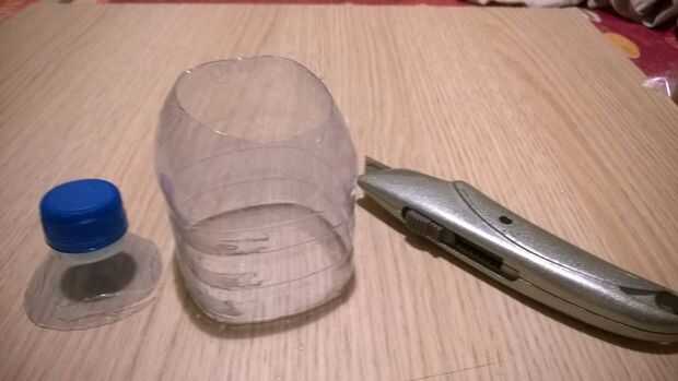 De lo contrario, corte la parte superior de la botella y el cuello. Ahora tienes un soporte para su botella.