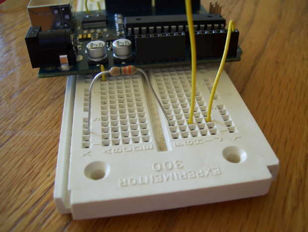 -Agregar otro cable desde donde la resistencia está conectada al pin analógico 5 en el arduino.