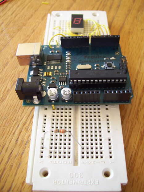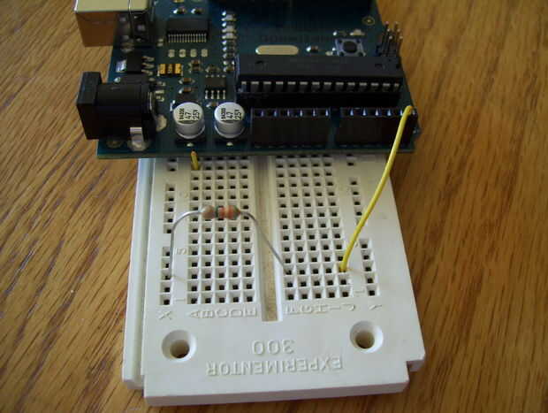 -Tome la resistencia de ohmios de 3,3 M y conectar desde el suelo en el arduino a un punto en el protoboard