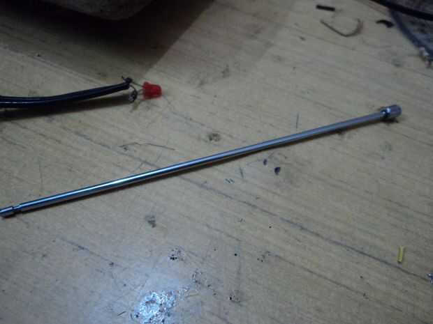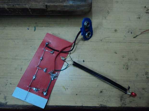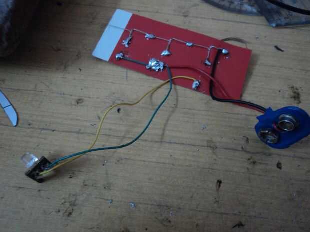 Ahora, algunos otros componentes como conector l.e.d y batería se dejan de estar conectado al circuito. Cuidadosamente todos los componentes de la soldadura y que el dispositivo más uso eficiente antena vieja como antena conectar la base de T1 a la antena. Tenga en cuenta que había cambiado el l.e.d como en primera, la diferencia no era sensible. Utilizar un l.e.d de color que no sean los parpadeantes.