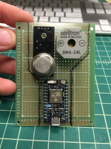 Suelde el cable negativo del sensor MQ2 a tierra y la positiva a Vin. La razón para conectar a Vin y a 3, 3V no es porque el sensor necesita al menos 5v. Asegúrese de que su alimentación es a 5v por lo menos y no más que el voltaje máximo especificado en la hoja de datos de sensores. Suelde el cable etiquetado A0 del sensor al pin analógico 0 MQ2. Tenga en cuenta que hay un pin D0 en el MQ2 breakout Junta pero no es necesario para funcionar correctamente.