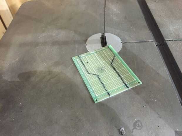 Después de que usted decida donde desea sus componentes, delimitar un contorno con un rotulador y cortar la Junta exceso. La soldadura de cada componente para el fotón como sigue: