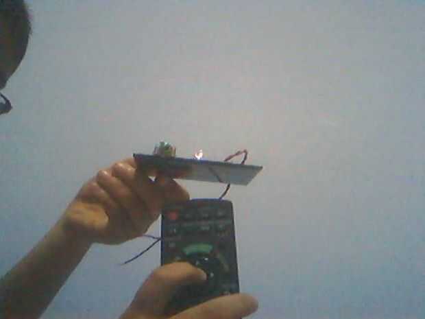 tenga la parte delantera de la placa en la mano toma tv remoto y pulse cualquier tecla si el interruptor está encendido y todo es correcto que el led debe destellar ahora apagarlo e ir al sol y con las puntas abiertas listo!