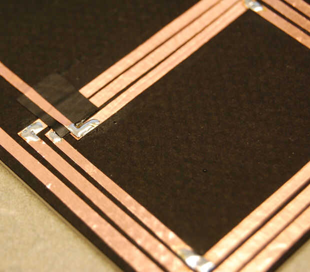 En primer lugar, agregamos un pequeño trozo de cinta aislante para conectar el extremo interior del bucle de antena (como se ilustra en la figura 1). Se trata de aislar los lazos externos. Luego añadimos otra tira de cinta de cobre para el extremo interior de la antena como se muestra en la figura 2. Aquí otra vez nos soldar los dos extremos de la cinta conductiva de cobre entre sí.