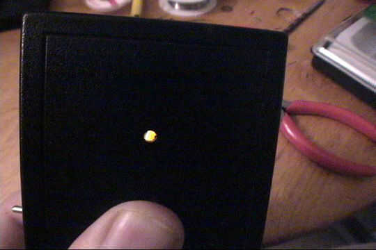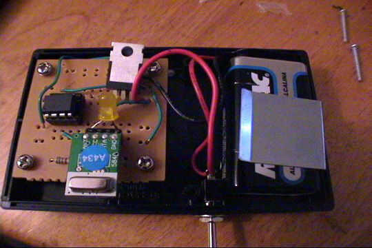 Cuando se gira el interruptor a, el LED comienza a parpadear (cada 1/2 segundo) y el transmisor comienza a transmitir.