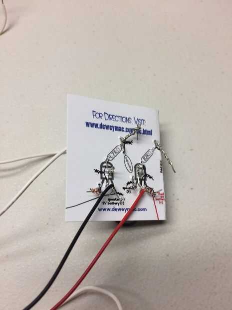 6. La vuelta la plantilla del circuito. Tras las imágenes, trence los cables y asegurarse de que cables trenzados no toquen los componentes.