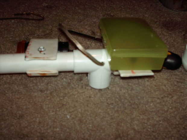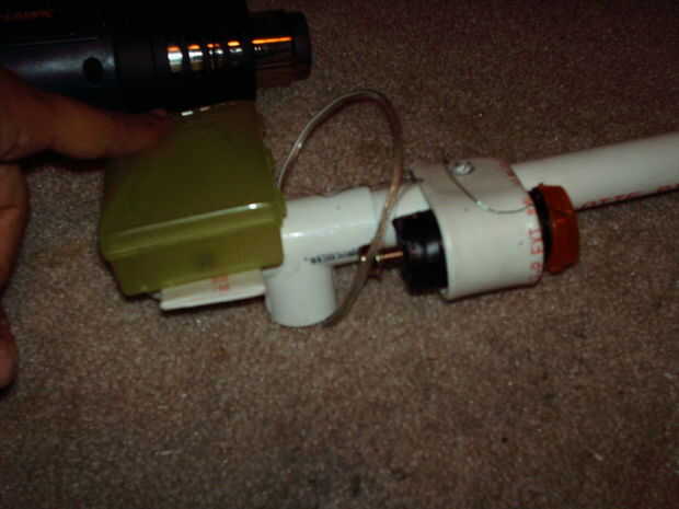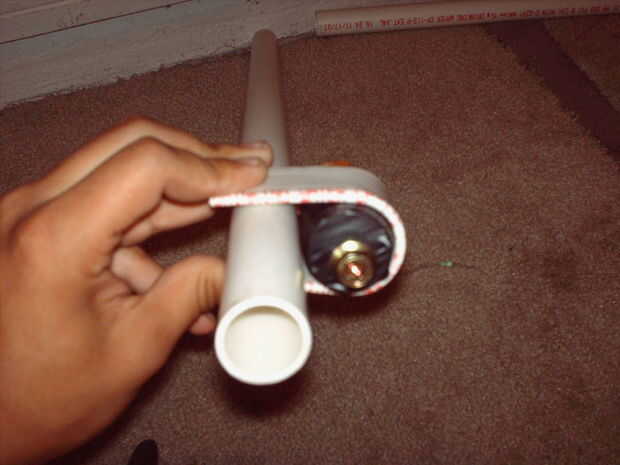 A la bobina de búsqueda de atach calienta el pvc y al suave doblado al ángulo derecho que quería. Utiliza 2 tornillos para sostenerlo después de que enfríe.