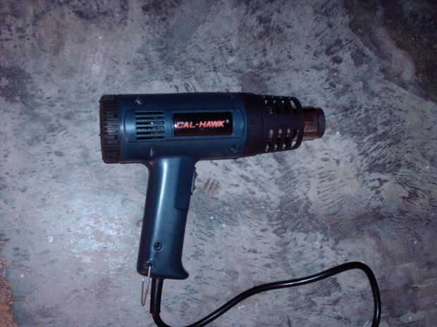 Para hacer unos soportes para sostener el equipo utilicé tubos de PVC. Les caliente hasta que estén suaves, luego pisan a plano, los ponen a veces que hamer ellos por lo que se quedan planas. Utilicé una Heatgun, pero usted puede utilizar un horno tostador, horno convencional, un soplete de propano barbacoa o lo que sea. Un ligther no funcionará, es demasiado pequeño (¿o es?)