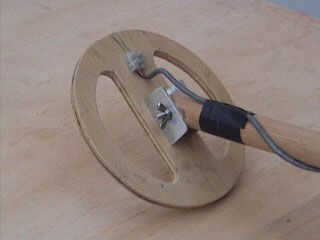 La bobina de referencia es enrollada en un trozo de espiga de madera de 12 mm de diámetro x 50 mm de largo. Esto tiene que caber dentro de la tubería plástica por encima y está ajustado moviendo la tuerca de latón. Taladre un orificio muy pequeño 1mm a cada extremo de la clavija de madera por lo que puede pasar al principio y al final del alambre a través de estos agujeros para mantener los bobinados en lugar.