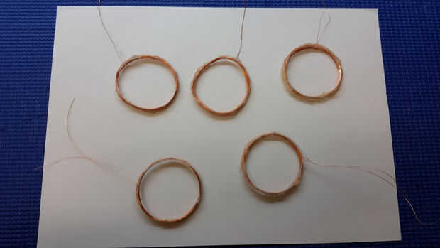 - Cobre alambre 0,26 mm aprox. 25m de longitud (5 bobinas with40 vueltas con un radio de 20mm)