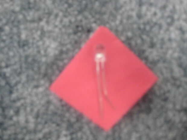 Ahora tome el claro LED de infrarrojos par-este es el detector (también llamado un fototransistor). Conecte el terminal negativo de la batería de 3V a la punta LED negativo utilizando una pinza de cocodrilo. Para hacer el clip de alojarte en la batería, usé un imán de neodimio, pero usted puede simplemente cinta adhesiva. Conecte el positivo del LED para el emisor del transistor PNP. Conectar el colector del transistor al lado positivo de la batería. Conecte la base del transistor el detector negativa. Luego conecte el cable desde el emisor del transistor PNP con el cable positivo del detector. Ahora, con cuidado, poner todo el circuito en el recipiente, dejando visible el detector.