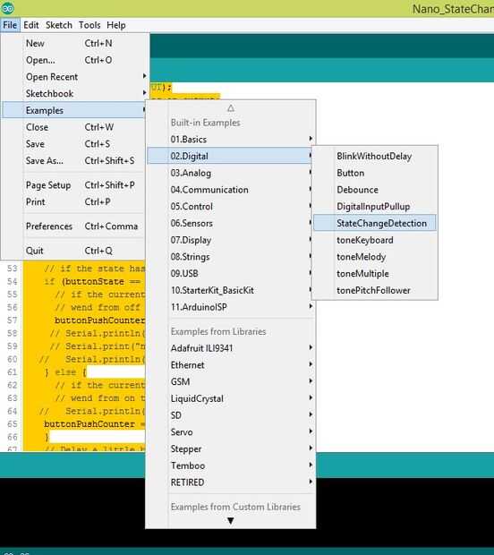 En este bosquejo, nosotros estamos continuamente comprobando/sondeo el D2 de la clavija de entrada para que la salida de PIR sensor está conectado.
