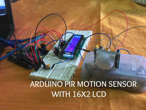 Este proyecto utiliza un Sensor de movimiento PIR y un módulo de pantalla LCD 16 X 2 para mostrar cuando se detecta el movimiento y cuando el movimiento se detuvo.
