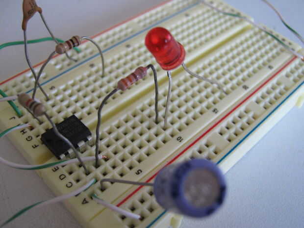 Detector de nivel de agua simple con un LM555 en modo astable: (12 / 23 paso)