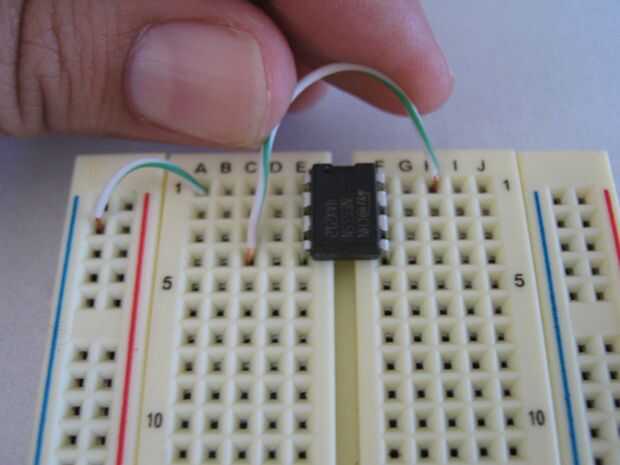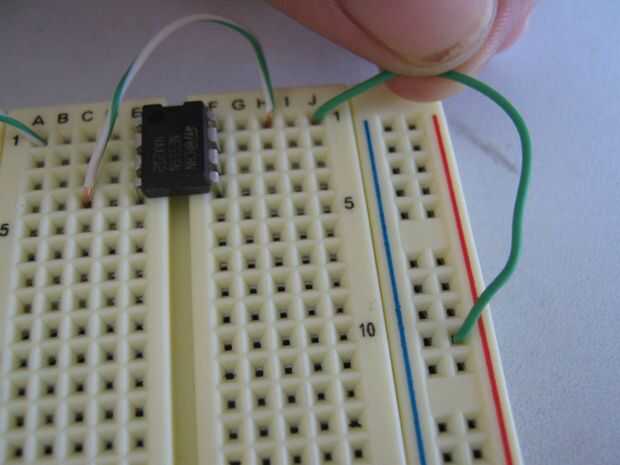 3. LM555 conectar terminales 4 y 8 al terminal positivo de la batería de 9 voltios.