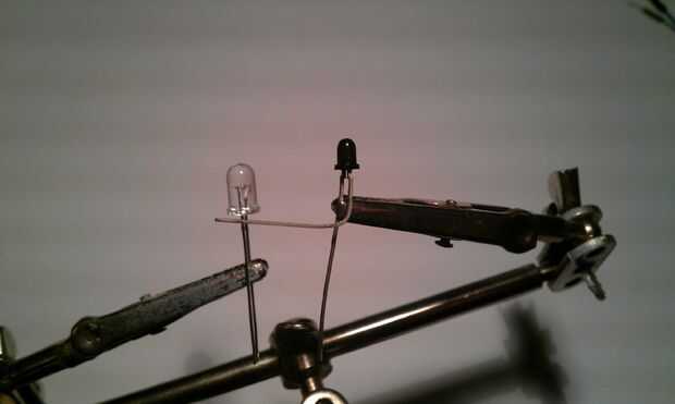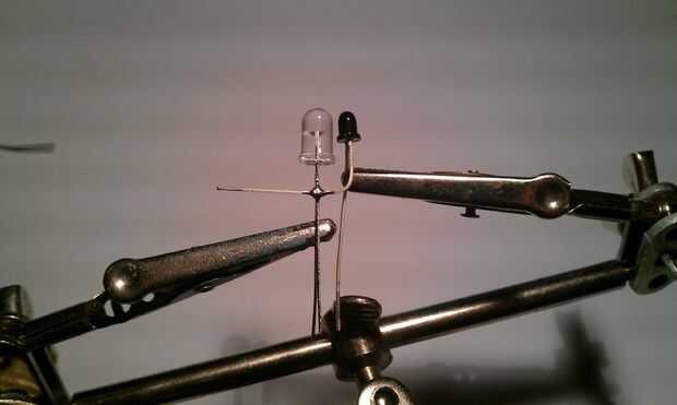 Como se puede ver en las fotos, el LED y el fotodiodo tienen una larga y una pierna corta. Las piernas cortas deben conectarse entre si como se puede ver en la imagen. ¿Alguna pregunta?