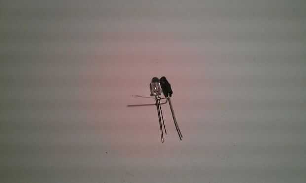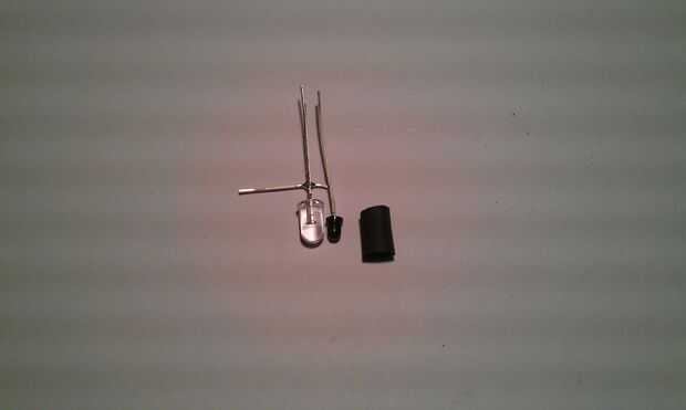 Corte una sección de encogimiento del calor de un poco más la gota negra en el fotodiodo. Ponérselo y calor! Fácil, ¿verdad?