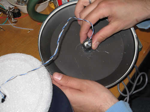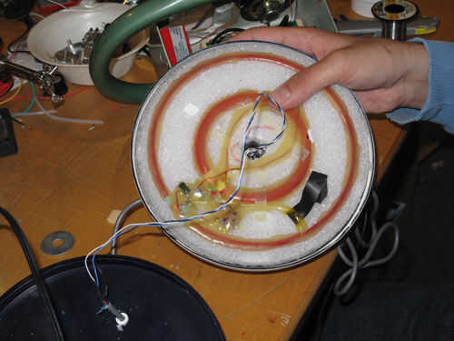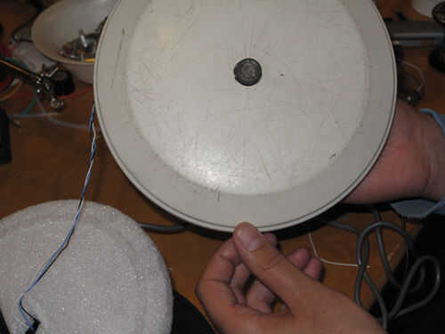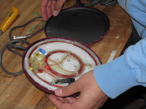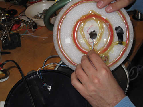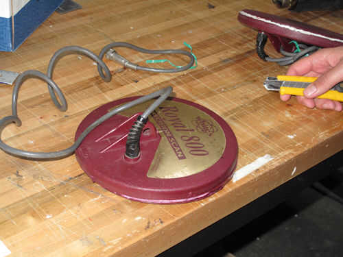 La carcasa del sensor de detector de metales también sostendrá el sensor de gas combustible que quitó anteriormente. Pero primero tenemos que quitar las bobinas del interior del sensor y para perforar un orificio de tamaño adecuado a través del centro de la carcasa del sensor.