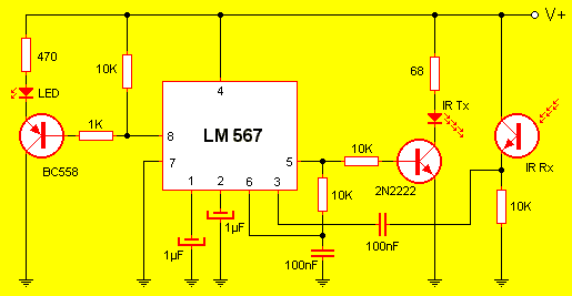 Hola chicos...Voy a mostrar cómo hice un simple sensor de proximidad, que detecta las señales de Control remoto ...Paso 1:Este es el circuito principal que consta de transmisor y receptor...he probado este circuito en el tablero de pan y he encontrad