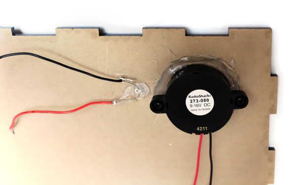 pude el zumbador LED y Piezo se hunden en el recinto del mismo modo hundido el relé de 9V en la vivienda. Me aseguré que estaba alineada con la cara exterior y luego caliente-pegué en su lugar.