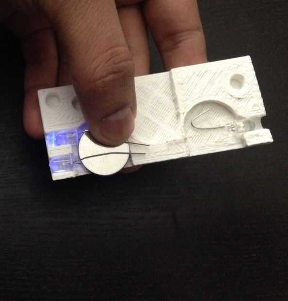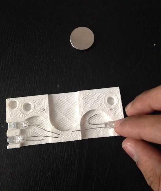 Añadir los dos LEDs de UV a la parte impresa 3D base y añadir a continuación añadir el LED blanco.