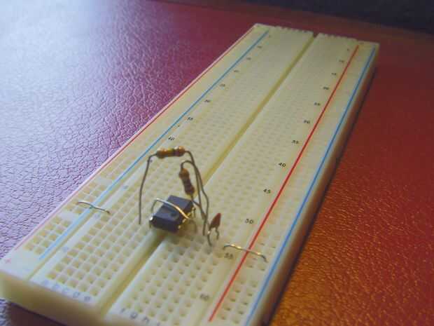 "Detector oscuro" usando un IC 555 temporizador (7 / 10 paso)