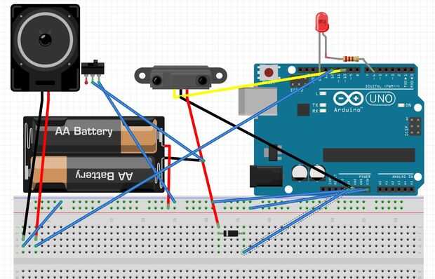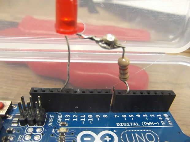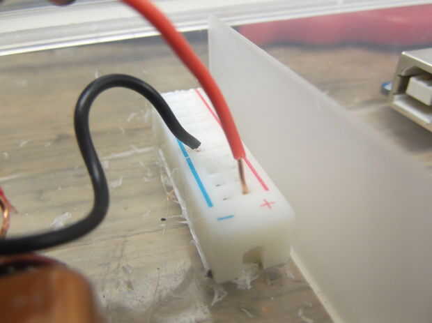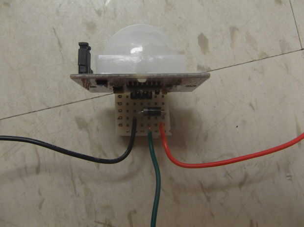 Insertar el LED lleva a GND en el Arduino y el pin 6. Conectar el sensor de PIR como se muestra arriba. Un diodo no es necesario, pero he utilizado uno porque quería proteger mi sensor PIR de los okupas de cualquier partido. Poner los + 9V y - 9V de cables de la batería y el interruptor en sus respectivas columnas en el tablero de distribución de energía. Conectar a GND de Arduino a los - 9V columna y VIN pin a los + 9V columna. Siento la mala calidad del diagrama Fritzing, fue mi primera.
