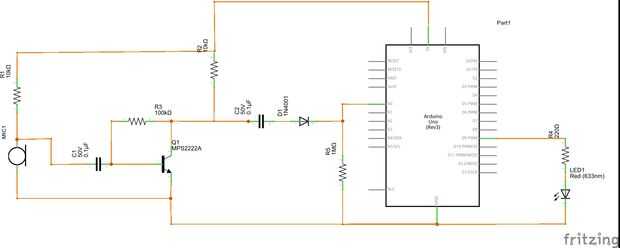 Fácil construir circuito le permitirá detectar el sonido con el ARDUINO, puedes comprar un módulo de sensor de detección de sonido hecho pre pero no funcionan vale la pena una sh! t de mi experiencia.